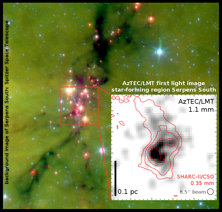 extremely young embedded stellar cluster, Serpens South, overlaid on